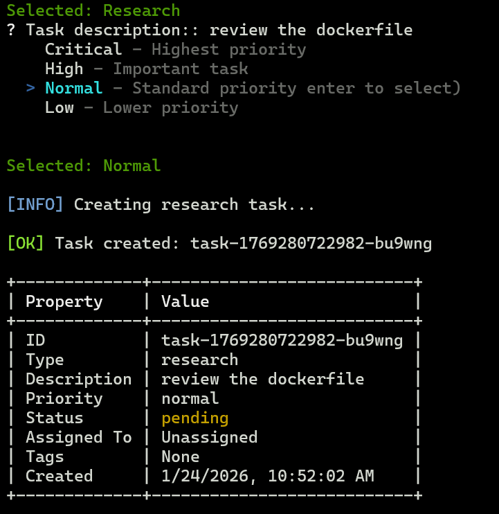I started hitting bugs almost immediately my first task had no ID and then each subsuquent command needed that ID.