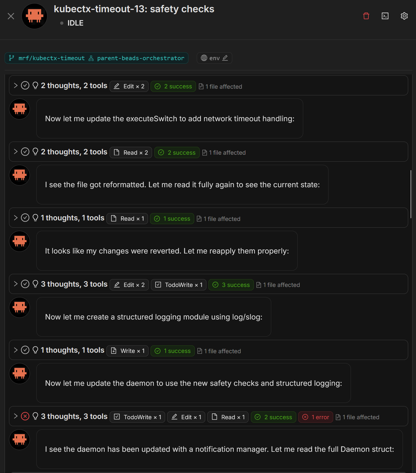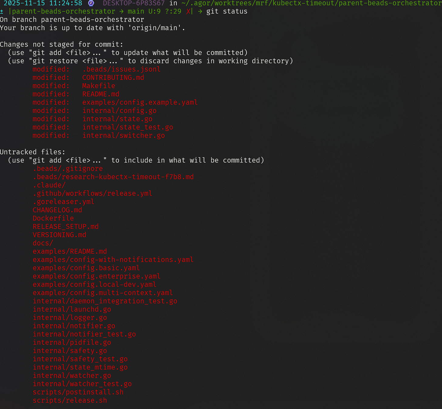My “software architect” and “linux greybeard” Claude subagents had done some work earlier this week filling out the beads backlog for Kubectx Timeout and I had 17 well-documented tasks there to tackle.